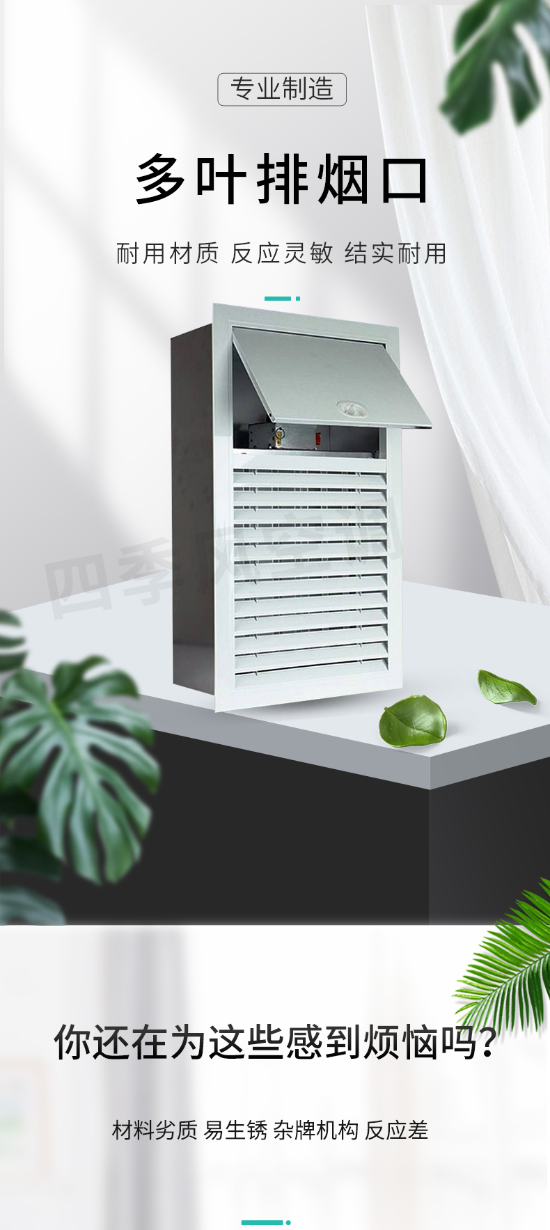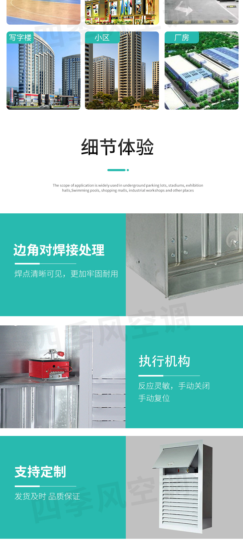 靖江市四季風空調設備有限公司——排煙防火閥平時常開;溫感器280℃自動關閉,手動關閉,輸出關閉信號;手動復位。